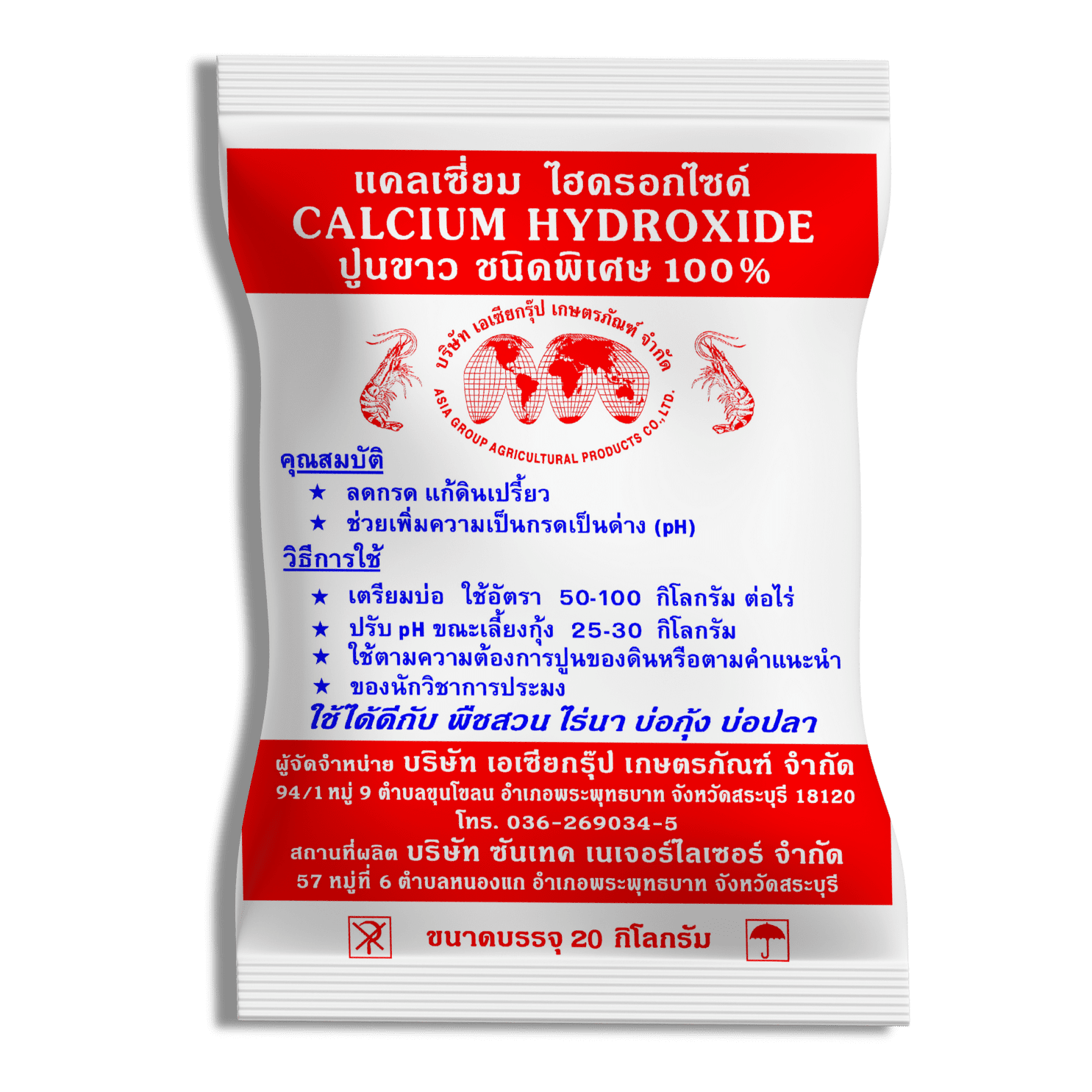 แคลเซี่ยมไฮดรอกไซด์ ปูนขาว 100 %, 20กก.