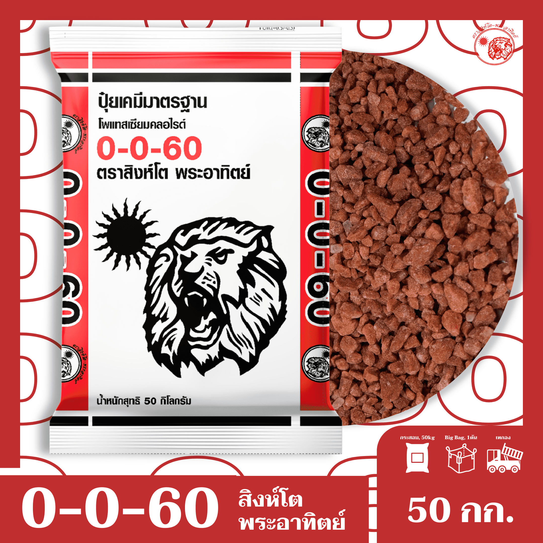 ปุ๋ยเคมีมาตรฐาน 0-0-60 โพแทสเซียมคลอไรด์ ( MOP ) ตราสิงห์โต พระอาทิตย์